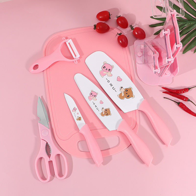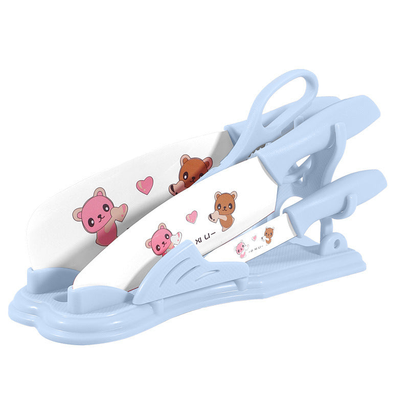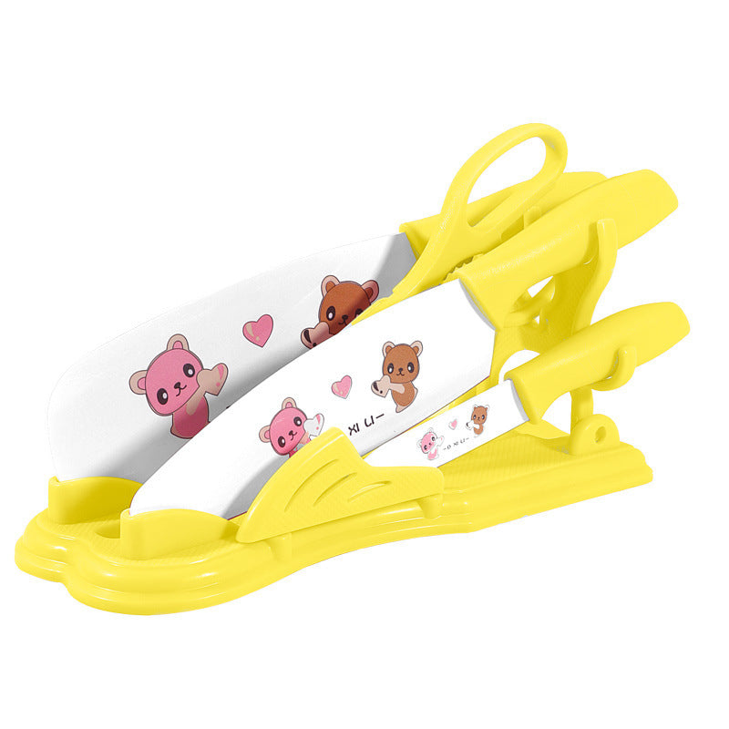 Product information: Material: Stainless steel Product Category: Knife Set Specification:5-Piece Pink Bears, 5-Piece Blue Bears, 5-Piece Yellow Bears Size Information: